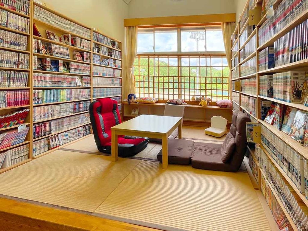 2019年3月に閉校した旧二川小学校の2階がマンガ図書館として再利用されています。